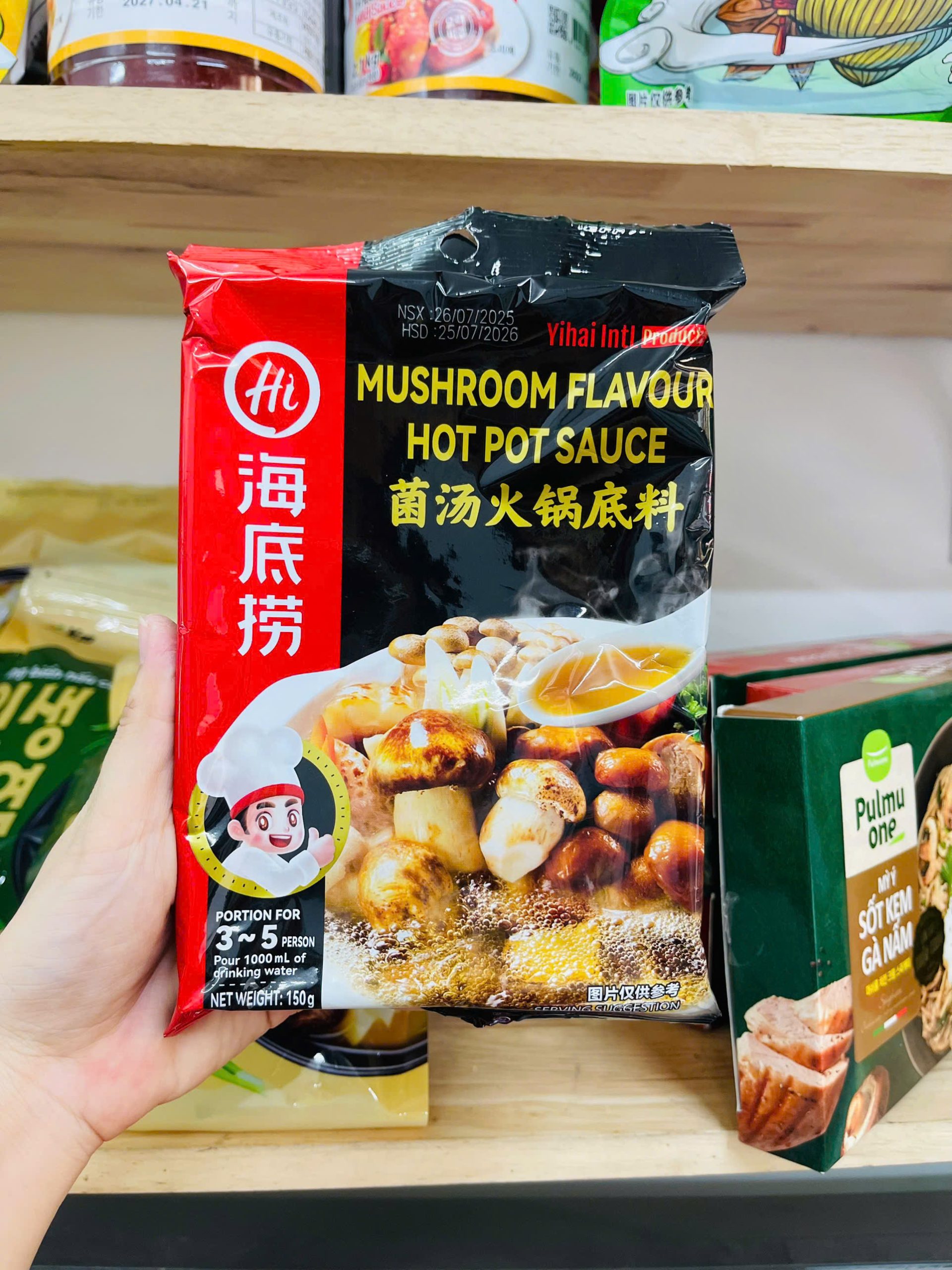 Hướng dẫn sử dụng: Cho gói cốt lẩu vào 1000ml nước sôi (ngon hơn nếu dùng nước hầm xương hoặc nước luộc gà), sau đó cho thêm gói nấm khô cùng một số nguyên liệu khác vào nấu cùng đến khi chín.
