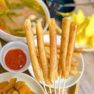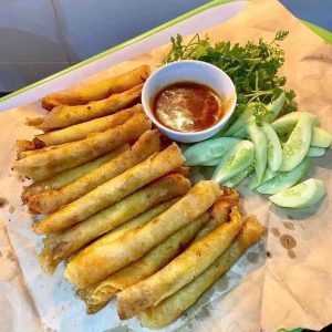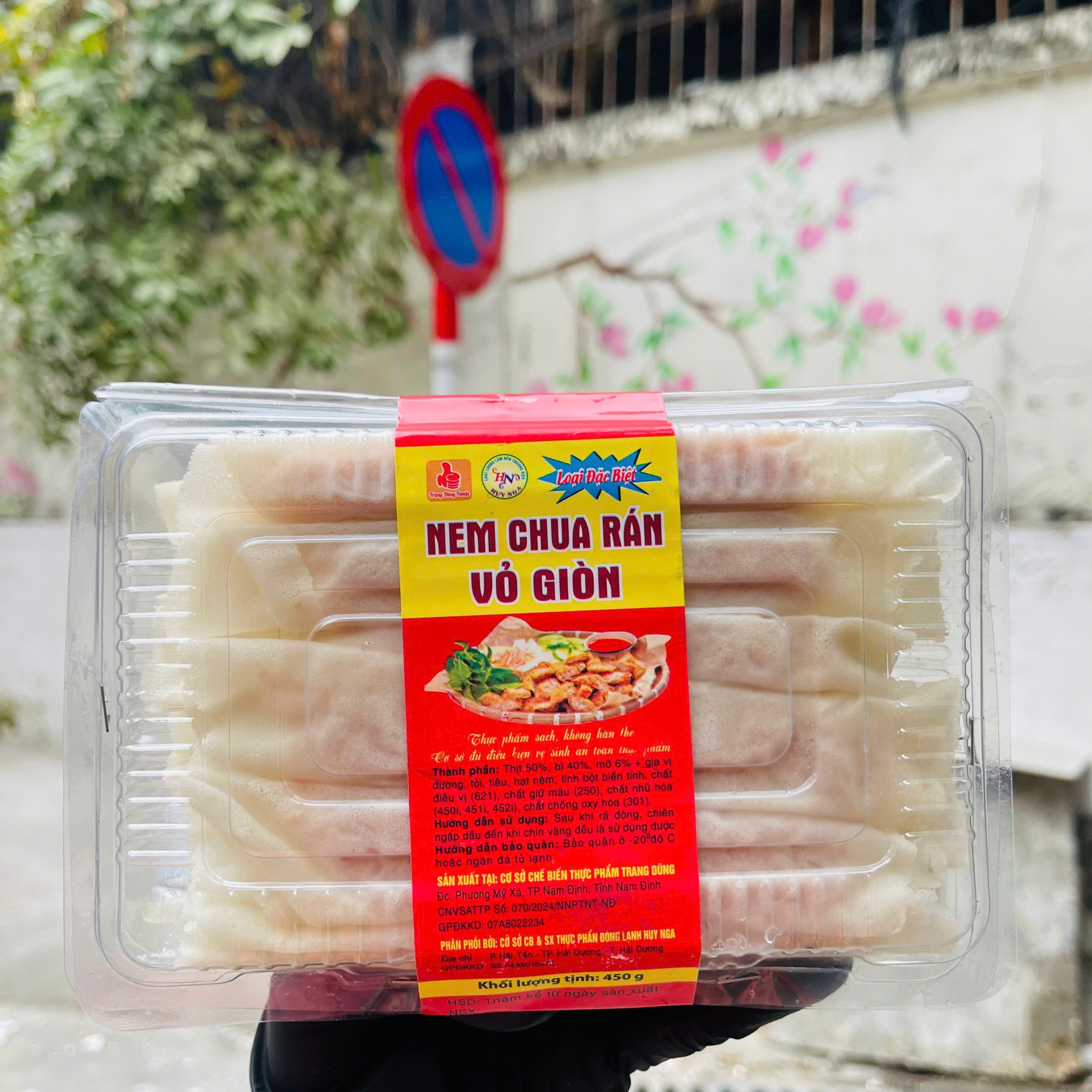 Nem chua được cuốn bằng vỏ bò bía giòn rụm, bên trong là thịt xay nhuyễn đậm vị, thơm ngon